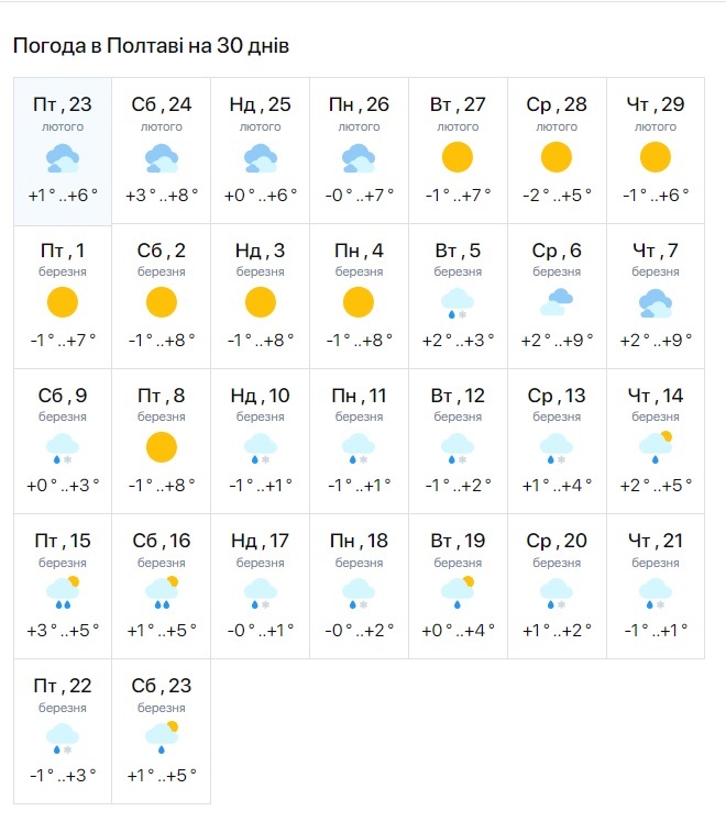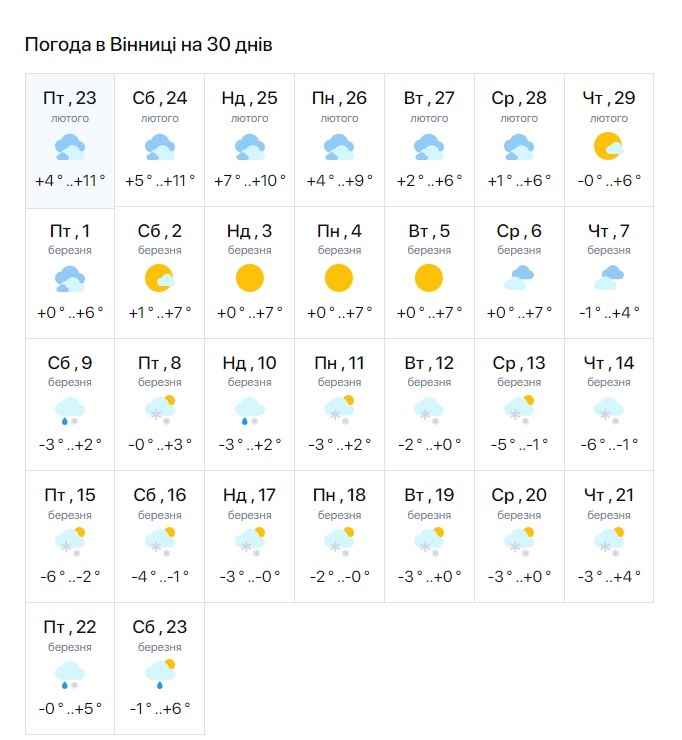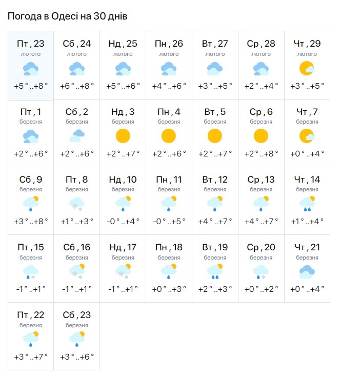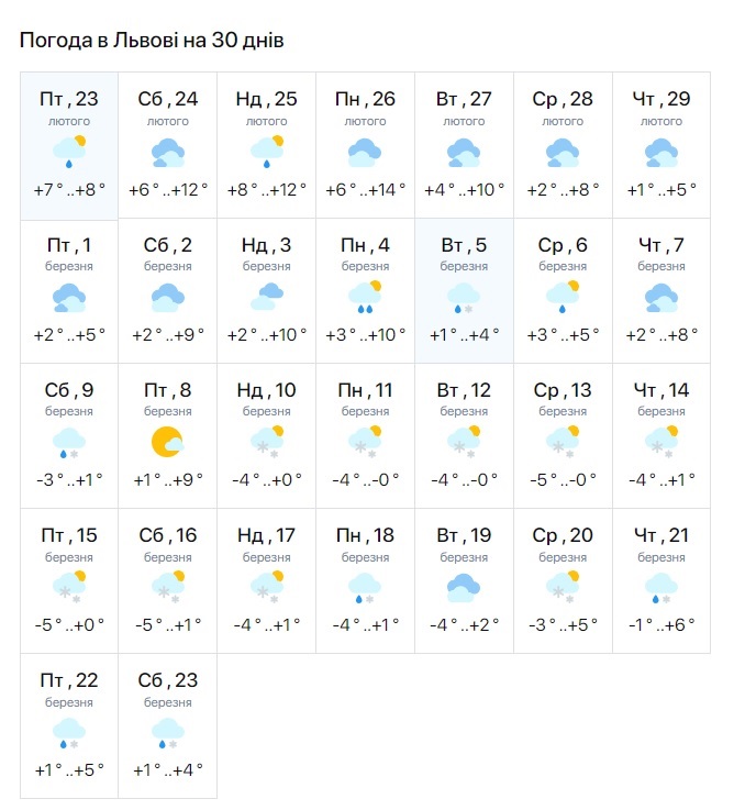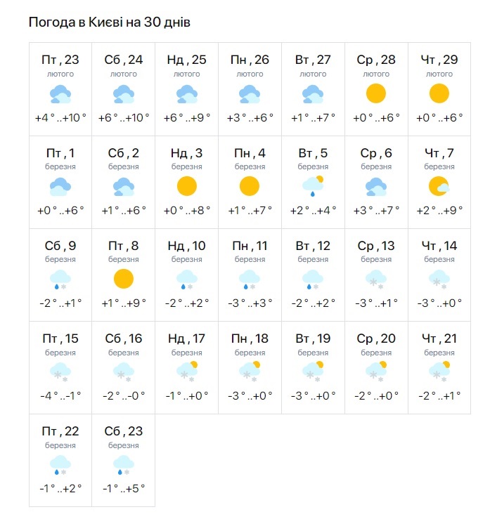 Это также соответствует прогнозу на март, который обнародовал портал meteo.ua. Синоптики считают, что во второй половине месяца температура упадет до "минусов" в большинстве регионов. Кроме того, украинцы еще могут столкнуться со снегопадами.