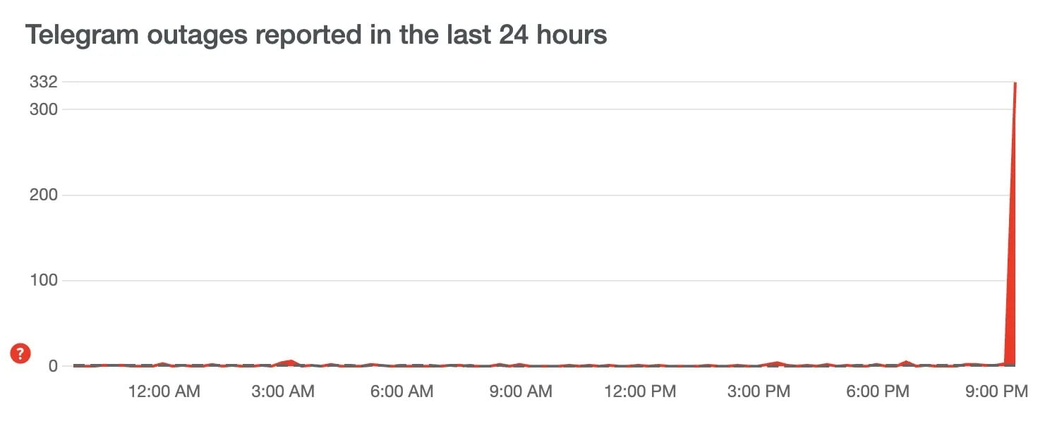 Первые жалобы на работу мессенджера появились в 21:00 по киевскому времени и достигли пика к 21:30.