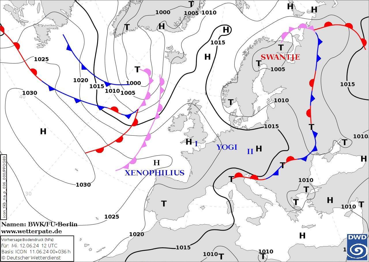 Однако в дневные часы 12-го июня антициклон с запада Европы по имени Yogi даст подзатыльник атмосферным фронтам и сдвинет их восточнее.