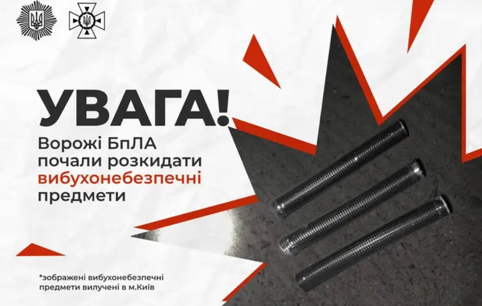 Россия начала использовать дроны, которые сбрасывают взрывоопасные предметы с замедленным действием прямо в населённых пунктах. Такие случаи уже зафиксированы в Киеве, Харькове и Сумской области.