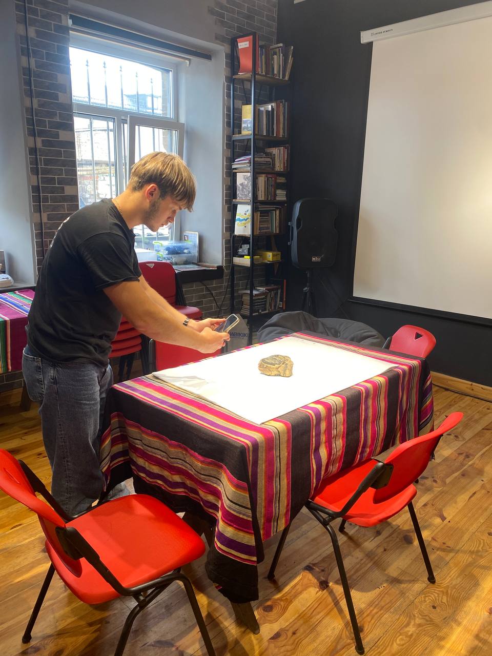 По словам бойца, он обратил внимание на участок грунта с необычным цветом и текстурой. Раскапывая ее аккуратно, Сергей сначала подумал, что наткнулся на камень, однако форма и рельеф оказались необычными.