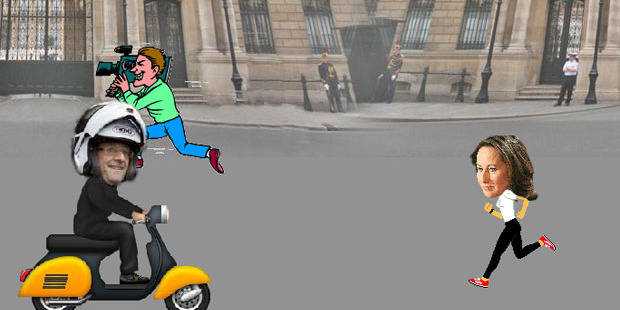 Олланд не случайно двигается на скутере. Согласно французской прессе, президент часто посещал свою любовницу именно на этом транспорте. Чтобы играть можете перейти по ссылке - jeu-hollande.com