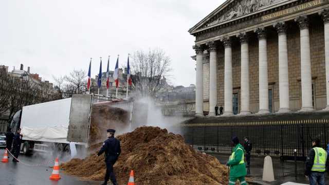 Водитель фуры выгрузил огромную кучу навоза перед фасадом парижского Бурбонского дворца, который является резиденцией Национального собрания (нижняя палата парламента) Франции, сообщает агентство Франс Пресс.