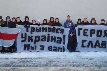 Активисты организовали акцию в поддержку украинского «Евромайдана», сделав групповую фотографию с плакатами «Трымайся, Украiна! Мы з вамі» и «Героям слава!», а также бело-красно-белым флагом — бывшим государственным флагом Белоруссии, который теперь считается символом оппозиции. На фотографии, выложенной в Сети, лица участников акции были заретушированы. По предварительной информации, их вычислили по записям уличных видеокамер, сообщает Belultras.by.
