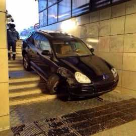 Около 18.00 мужчина, находясь за рулем автомашины Porsche при выезде с парковочной территории, не справился с управлением и съехал в подземный пешеходный переход. Случившееся он объяснил тем, что внезапно перепутал педали газа и тормоза.