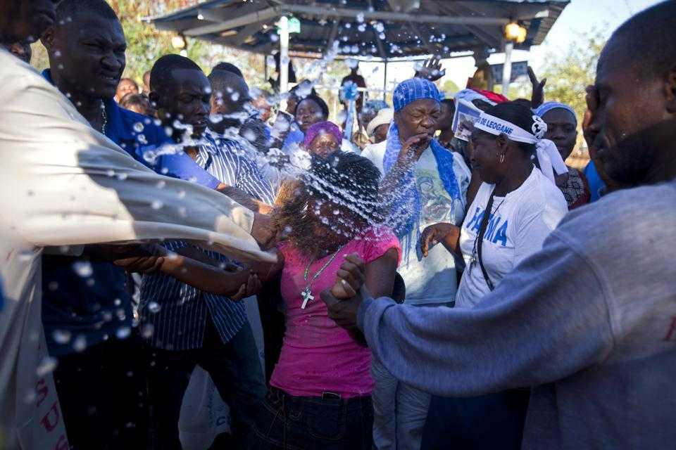 Некоторые принесли свои паспорта в надежде, что их молитвы могут помочь им получить визу на выезд из нищего Гаити. Другие подняли вверх фотографии с больными членами семьи в надежде, что их молитвы будут услышаны Богом.