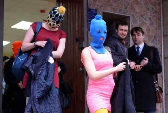 Яркие летние платья, леггинсы и балаклавы. В такой одежде покинули отделение полиции бывшие участницы группы Pussy Riot.