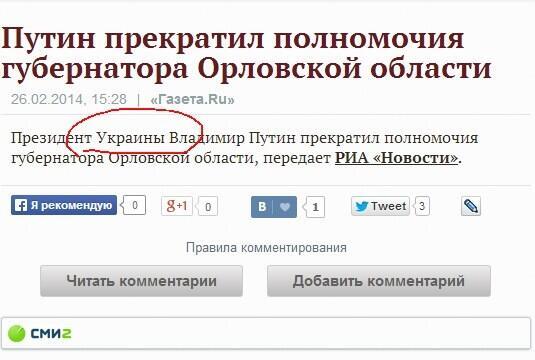 Путин прекратил полномочия губернатора Орловской области, как президент Украины, сообщает twitter .