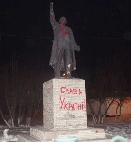В правобережной части российского города Красноярск (крупнейший город Восточной Сибири) памятник Ленину залили красной краской, написав на постаменте: "Слава Украине!"