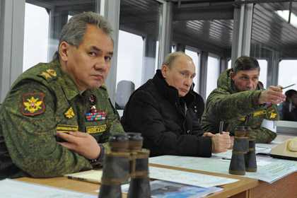 Накануне Владимир Путин лично посетил полигон Кирилловский в Ленинградской области и вместе с министром обороны Сергеем Шойгу наблюдал за финальным этапом учений.<