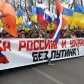 Люди вышли с плакатами "Путина под суд!", "Путин! Не разжигай гражданскую войну в Украине", "Страшно жить в этой стране", "Украина, прости нас". Перед колонной растянут большой баннер, на котором написано: "За Россию и Украину без Путина".