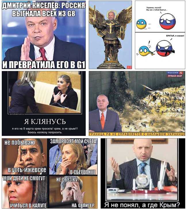Не забывают и про его якобы любовницу — Алину Кабаеву. Обсмеивают пользователи интернета и санкции на запрет въезда американских деятелей на территорию Российской Федерации. Достается, впрочем, и украинской власти — чаще всего объектом иронических насмешек становятся Александр Турчинов и Арсений Яценюк. В интернете такие картинки набирают рекордные количества «лайков» от пользователей и моментально распространяются. В комментариях народное творчество оценивают позитивно — считают, что смех в данной ситуации поможет не падать духом. «Пусть Россия знает, что мы их не боимся!» — пишут пользователи. «Сегодня» подобрала несколько ярких и наиболее популярных карикатур, появившихся за последнее время.