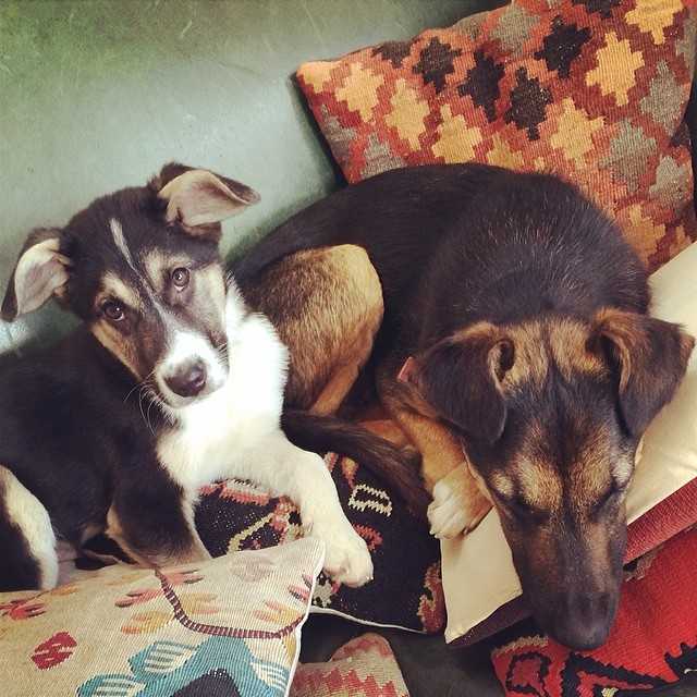 Сейчас в Instagram'e @thesochipups 12 трогательных снимков и видеороликов, изображающих маму-собаку и щенят Джейка и Мишку.