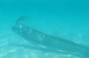 Снятые на днях кадры запечатлели живую 4,5-метровую ремень-рыбу, плавающую на мелководье в кристально чистой воде моря Кортеса в Мексике. Снимок был сделан экспертами, прибывшими к водоему в рамках программы, организованной чикагским аквариумом.