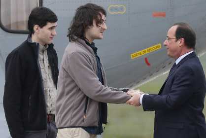 Встретивший журналистов президент Франции Франсуа Олланд заявил, что их освобождение стало огромной радостью для их родных и поводом для гордости в масштабах всей страны. Он также поблагодарил власти Турции за помощь в возвращении, не уточнив, в чем именно состояло содействие Анкары. Об условиях освобождения сотрудников СМИ Олланд также ничего не сказал.<
