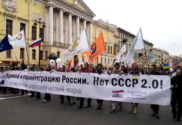 В частности, в сообщении говорится, что шествие оппозиционных демократов России, заявленное как "антивоенный марш", началось в 12.30 (по Киеву – УНИАН) на Лиговском проспекте, продолжилось по Невскому проспекту и Садовой улице и вскоре завершится митингом на Марсовом Поле.
