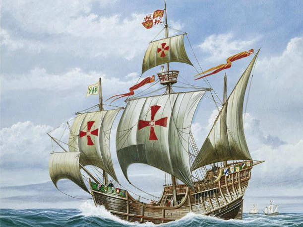 В первую экспедицию по указу короля и королевы Испании он отправился во главе небольшой флотилии из трех кораблей. Флагманом была каракка под названием "Санта-Мария". На Рождество 1492 года она разбилась у побережья Гаити, ее обломки использовались моряками Колумба для строительства флота.