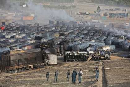 Возле Кабула были подожжены более 400 грузовых автомобилей, перевозивших топливо и масло. Об этом сообщает CNN со ссылкой на афганскую полицию. По предварительным данным, сырье предназначалось для войск НАТО.