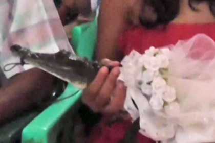 Мэр небольшого рыбацкого города Сан Педро Уамелула в Мексике сочетался браком с крокодилом, сообщает Sky News. Символический обряд был проведен из суеверия, согласно которому животное на самом деле является заколдованной принцессой и после свадьбы принесет городу удачу.