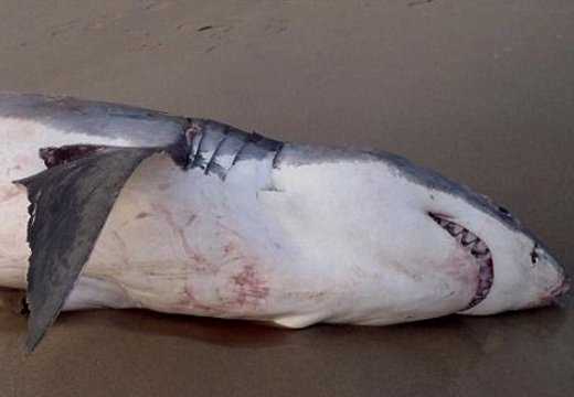 На австралийском пляже Коронадо Бич обнаружили мертвую белую акулу с морским львом, который застрял в ее горле.