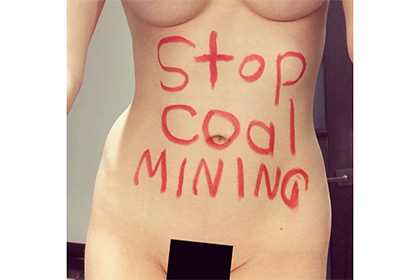 Австралийская топ-модель Робин Лоули опубликовала фото в обнаженном виде на своей странице в Instagram, выразив, таким образом, возмущение строительством угольной шахты в Квинсленде, сообщает The Age. На снимке 25-летняя звезда подиума предстала с выполненной красным маркером надписью «Остановите добычу угля» (Stop coal mining) на животе.