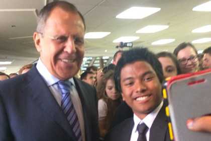 Глава российского МИД Сергей Лавров сделал селфи со студентом МГИМО из Малайзии после своей лекции в институте. Снимки были опубликованы в социальной сети Instagram.