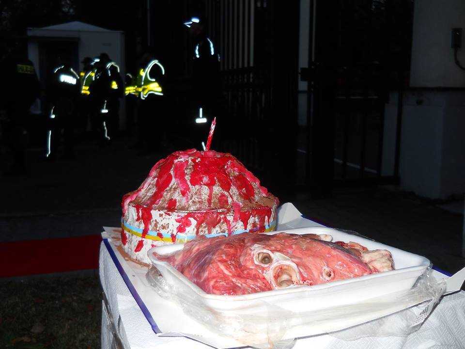 Украинцы, проживающие в Польше, ко дню рождения президента России Владимира Путина приготовили ему специальный подарок - окровавленный торт.