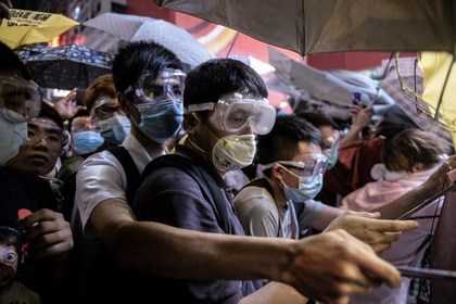 Столкновения между полицией и протестующими возобновились в субботу, 18 октября, в Гонконге.