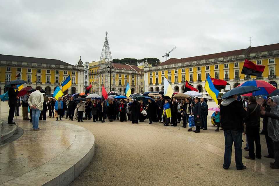 Около сотни человек вышли с украинскими флагами в центр Лиссабона. Там была провозглашено заявление Совета Союза украинцев в Португалии по случаю 81-й годовщины геноцида украинского народа.<