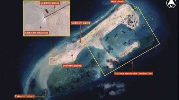 Чтобы построить огромный военный аэродром, Китай расширяет надводную часть одного из островов архипелага Спратли.