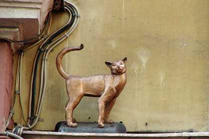 Скульптуры кошки Василисы и кота Елисея были установлены в 2000 году. Автор памятников — художник Владимир Петровичев. Монумент был установлен в память о «мяукающей дивизии» — котах, завезенных в 1943 году в блокадный Ленинград для борьбы с нашествием крыс.