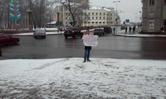 В Минске возле станции метро Купаловская активист общественной организации "Альтернатива" (зарегистрированное в Латвии) Алексей Шубаро провел одиночный пикет против политики Путина, сообщает "Альтернатива".