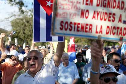 Более 200 кубинских активистов устроили в Майами акцию протеста против возобновления дипломатических отношений между островным государством и США. Митингующие скандировали «Обама — предатель», размахивали флагами двух стран.