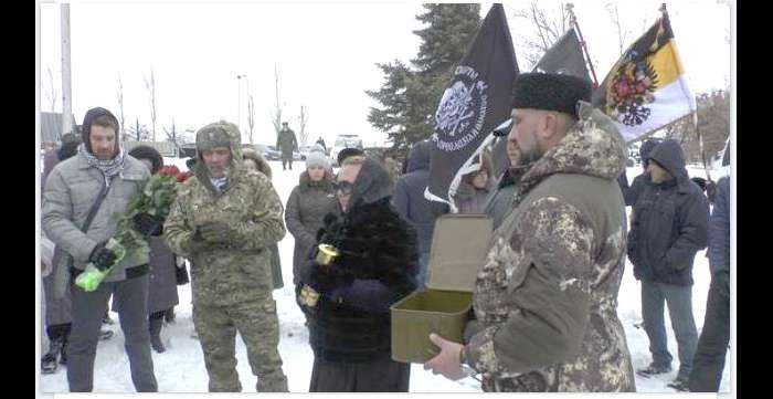 На предлагаемом снимке аферистка произносила какую-то пламенную речь и получает какие-то подарки от неких российских «имперских» «патриотов».