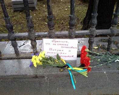 В Москве под посольством Украины в РФ 24 января полиция задержала и избила несколько человек, которые пришли выразить соболезнования в связи с событиями на Донбассе и возложить цветы.