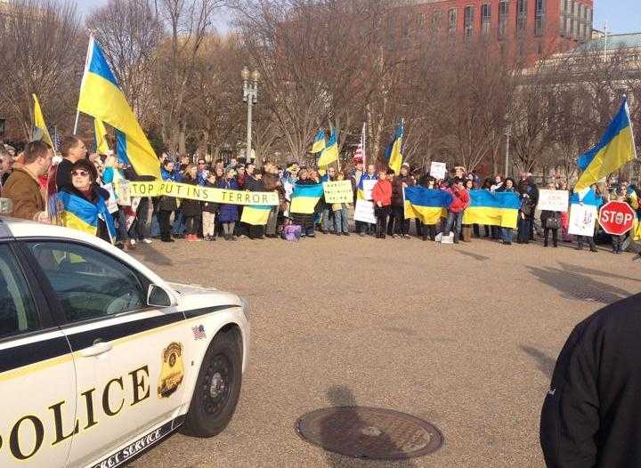 Украинцы в Вашингтоне пришли под стены Белого Дома, чтобы призвать Президента США Барака Обмана оказать Украине военную помощь и ужесточить санкции против России и таким образом остановить агрессию Путина.
