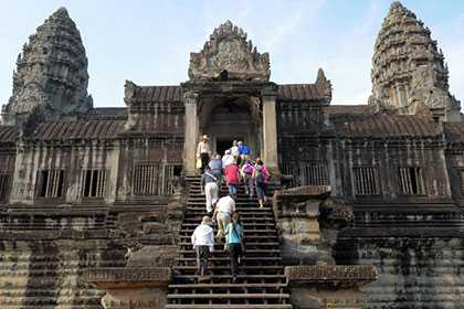 Ангкор-Ват — храмовый комплекс в Камбодже, посвященный богу Вишну, — является одним из крупнейших культовых сооружений в мире и включен в список Всемирного наследия ЮНЕСКО. Храмы были построены возле древней столицы кхмерского государства, города Ангкор, в котором проживали до полумиллиона жителей. Комплекс был заброшен в XV веке, европейские исследователи обнаружили его в 1860 году. Ангкор-Ват считается одним из символов Камбоджи, изображен на государственном флаге и гербе страны.