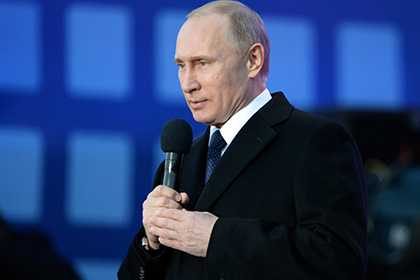 Перед выступлением глава государства спел гимн России с участниками митинга, передает «Русская служба новостей».