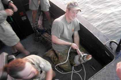 Размер крокодила — около трех метров. Его извлекли из ловушки в гавани близ города Дарвин. Рейнджер-охранник дикой природы Эрин Бриттон заявила, что принц отлично справился со своей задачей и «проделал большую работу».