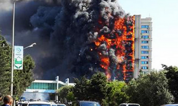 По словам очевидцев, возгорание началось с фасада здания, в считанные минуты пожар охватил все здание. На месте происшествия работают 30 бригад пожарных. По данному факту уже открыто уголовное дело. Оперативно-розыскная деятельность осуществляется под контролем президента.