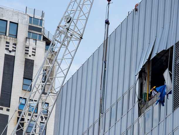 Оборудование, которое поднимал кран, отсоединилось и, пролетев 28 этажей, упало на пешеходную дорожку. Среди пострадавших — двое строительных рабочих. Никто из раненых не получил травм, опасных для жизни.