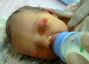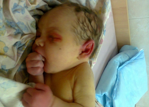 У ребенка отеки глаз – из-за того, что они были засыпаны землей. Маленькое тельце лежало в могиле, устроенной мамой, и боролось за жизнь почти сутки. Еще чуть-чуть и наступила бы смерть. Но потом детский крик прорвался наружу. Его услышал один из местных жителей.