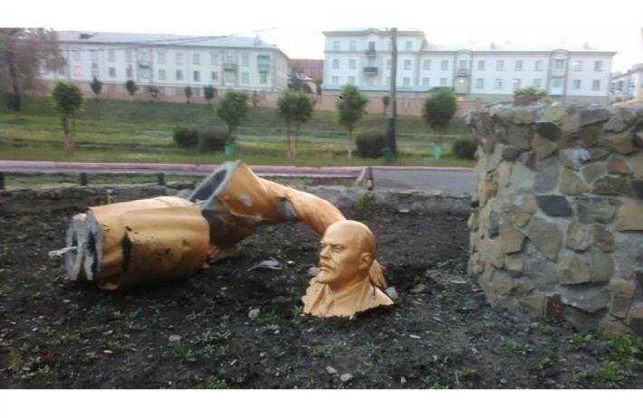 "В России снесли памятник Ленину. Если точнее - в городе Прокопьевск Кемеровской области. Но Правый сектор тут совсем не причем, да и историческая память в местных не проснулась. Просто бухой чувак полез на вождя сфотографироваться и уронил)))".