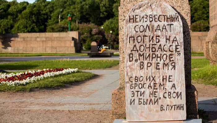 В Санкт-Петербурге на Марсовом поле активисты движения «Весна» установили памятник неизвестному солдату РФ, который погиб в Донбассе. Надгробие в память «о жертвах новой братоубийственной войны между Россией и Украиной» находится рядом с захоронениями жертв революций и гражданской войны. Об этом активисты сообщили на странице движения «Весна» в социальной сети, передает «Пресса Украины».