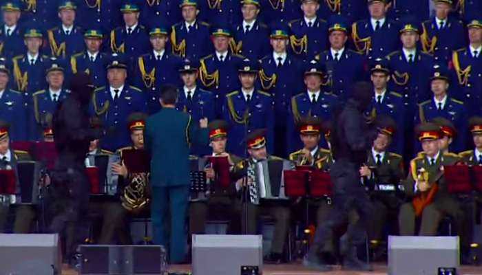 Форум «Армия-2015» открылся в Подмосковье; на открытии присутствовал глава России Владимир Путин, который вместе с другими участниками невольно стал зрителем оригинального номера. Во время выступления военного оркестра с традиционными народными инструментами на сцену выскочили два спецназовцы ВС РФ. Их лиц видно не было, поскольку танцоры были одеты в балаклавы.