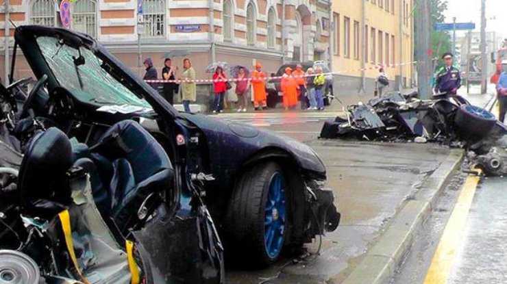 Как показало предварительное расследование, произошел удар о металлическую колонну рекламного щита, в результате которого Porsche 911 разорвало на две части.