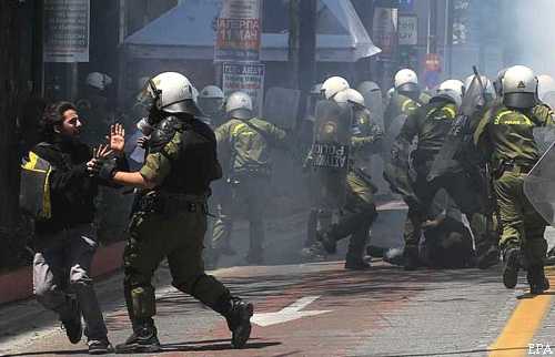 В Греции начались столкновения протестующих с полицией, передает УНН со ссылкой на Reuters. Протестующие начали бросать бутылки с зажигательной смесью, полиции пришлось в ответ применить слезоточивый газ.