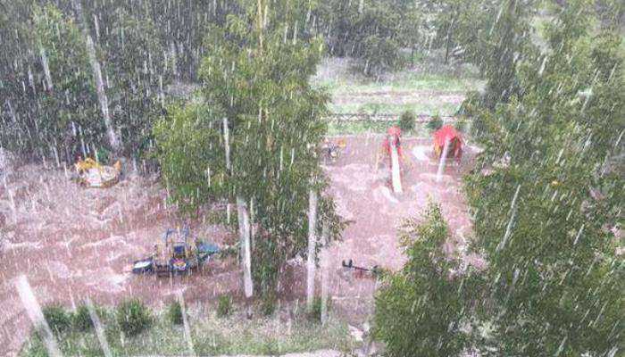 Ливень в Санкт-Петербурге затопила городские улицы. Канализационные стоки не справлялись с огромным объемом воды, что привело к тому, что автомобили практически плавали по улицам. Кроме того, по словам местных, в районе станции метро "Рыбацкое" прошел град размером с перепелиное яйцо.