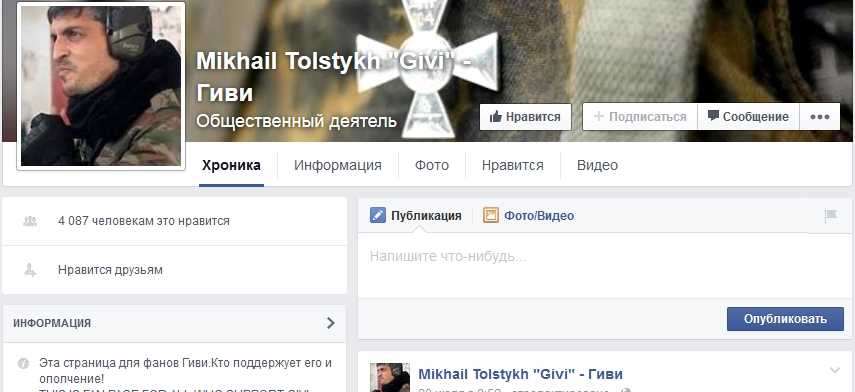 «Гиви» представлен в Facebook как «общественный деятель». Соответственно, ради многомиллионной прибыли подданные Цукерберга готовы поддерживать терроризм.