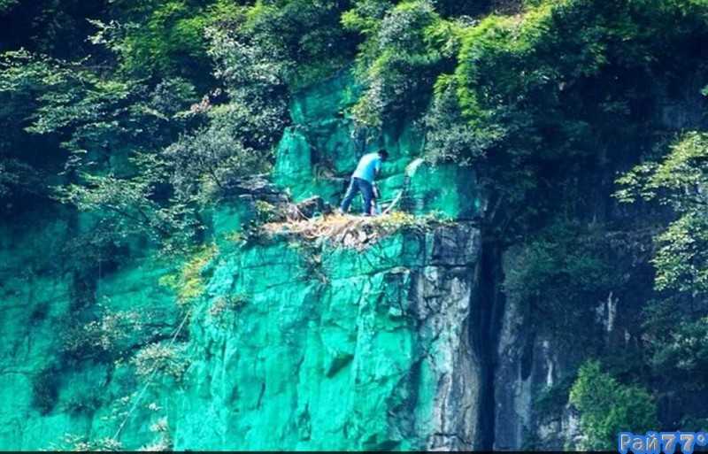 Китаец покрасил 900-метровую скалу в зеленый цвет, следуя традициям фэн-шуя.